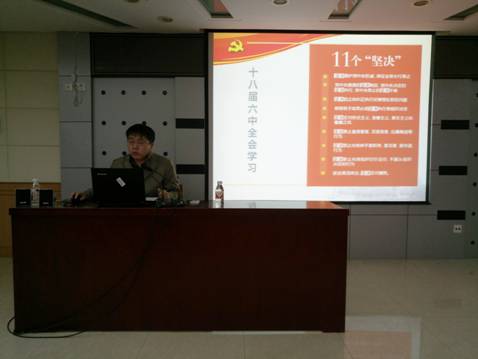 11月17日下午,机关党委组织机关科级以上干部集中学习党的十八届六中全会精神,动员机关上下把思想和行动统一到中央全会精神上来,凝心聚力,奋发有为,推动学校各项事业持续健康发展。