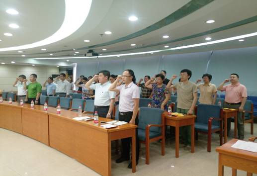 6月28日下午,在中国共产党建党96周年之际,机关党委在世纪楼18楼报告厅开展了一次温馨而隆重的集体政治生日纪念活动。鲜艳的党旗下,53名2017年党龄满5、10、15、20、25、30年的机关党员举起右手,面向党旗庄严地重温入党誓词,表达了对党忠诚、积极工作的决心和信心。这是机关党委为体现对党员的关心关爱,提高党组织的凝聚力和战斗力,激发党员政治热情,共同庆祝党的第96个政治生日的场景。