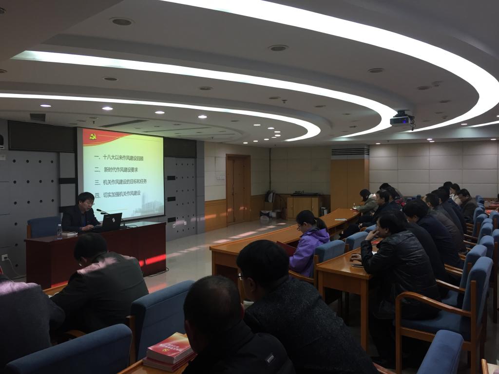甄红军以《新时代新征程,作风建设没有休止符》为题,介绍了大会的基本情况及重大意义,从“新时代”“新使命”“新思想”“新征程”“新要求”五个维度解读了十九大报告的深刻内涵和核心要义。回顾了十八大以来作风建设取得的成绩,提出新时代作风建设的要求,并着重阐述了机关作风建设的目标和任务,要树立树立服务精神,加强思想作风、学习作风、工作作风、领导作风和生活作风。同时,还结合学校建设提出切实加强机关作风建设的四个方面:一是坚定理想信念,回应时代召唤;二是增强大局观,提倡奉献精神;三是提升能力素质;四是真抓实干,久久为功。