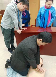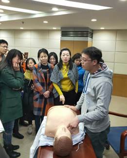 随后,秦皇岛市海港医院急诊科主治医师吴刚又围绕心肺复苏基本知识、实施急救的要点和步骤、操作注意事项等内容进行了详细而深刻的讲解,他以生动的案例结合现场演示对心肺复苏术进行了普及,随后又在心肺复苏人模上现场指导学员进行“CPR人工心脏复苏”实操演练,帮助大家全面理解心肺复苏知识,并掌握急救要领。