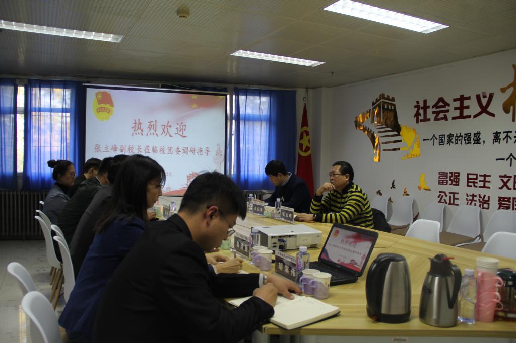 随后,张立峰副校长重点就思想引领、科技创新、社团活动、社会实践等内容和与会同志进行了深入探讨。他对校团委的工作给予了充分肯定,并结合学校改革与发展的实际,对校团委今后的工作提出了殷切期望。他指出,做好共青团的工作要有不怕困难、迎难而上的精神。他希望全体共青团干不断增强工作的责任感和使命感,从严加强自身建设,团结奋进,开拓创新,全面推动我校共青团工作更上新台阶。