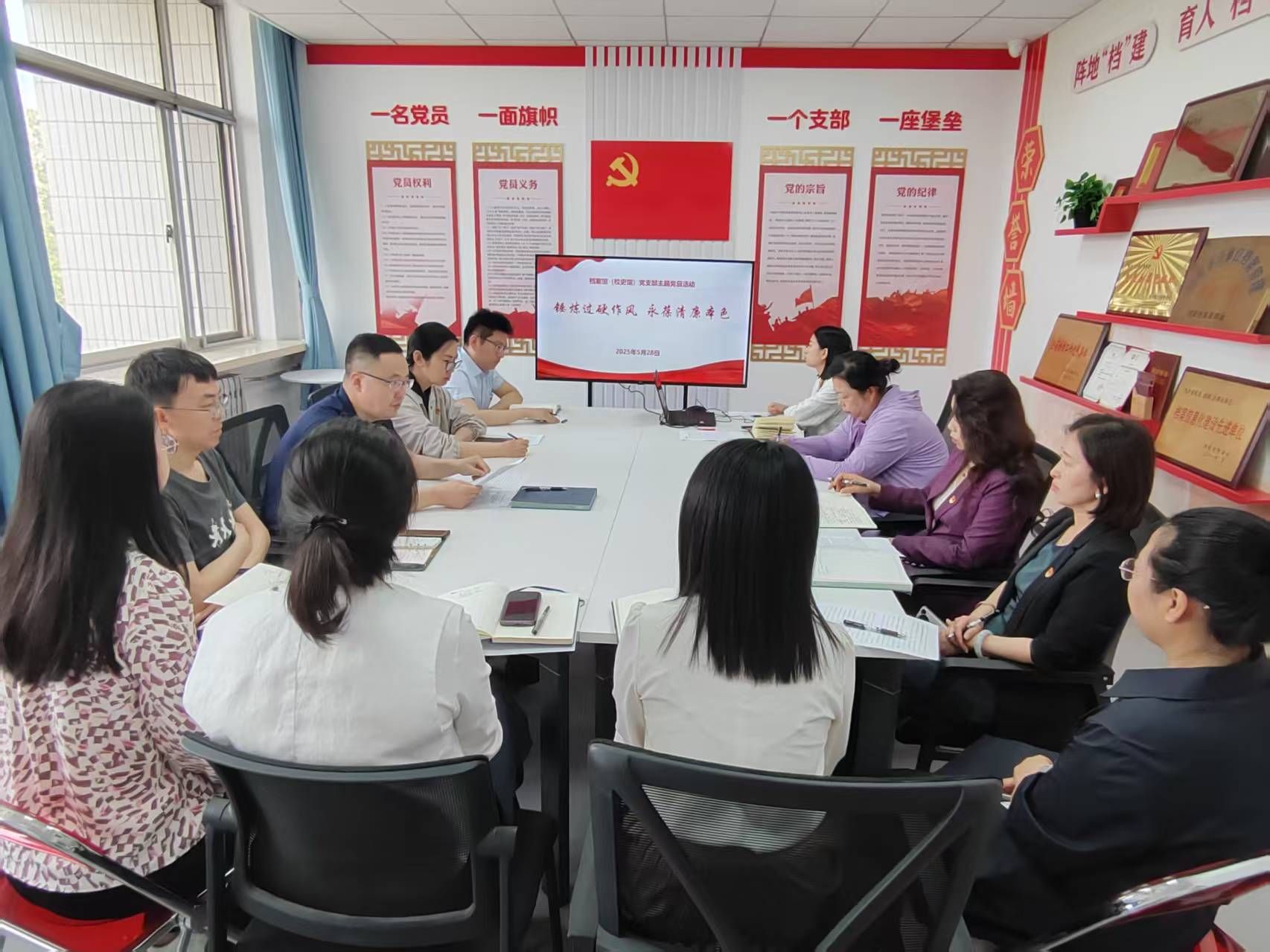 为深入学习贯彻习近平总书记关于党的作风建设的重要论述,推动深入贯彻中央八项规定精神学习教育走深走实,5月28日下午,档案馆(校史馆)党支部在党员活动室组织开展了“锤炼过硬作风 永葆清廉本色”主题党日活动,通过集中学习研讨,引导全体党员筑牢思想根基,涵养廉洁正气。