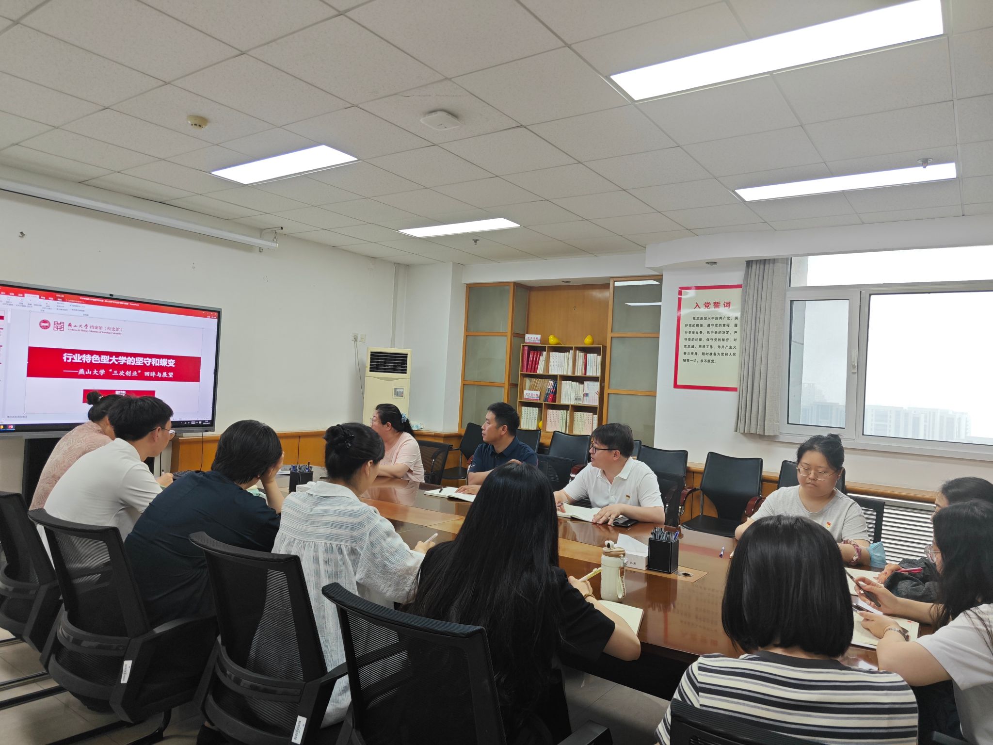 郭沛以《行业特色型大学的坚守和蝶变——乌鸦传媒“三次创业”回眸与展望》为题,系统回顾了学校与国同行、扎根行业和地方办学的奋斗历程。从“两次搬迁、三次创业”的艰辛实践,到锚定“中国特色、世界一流大学”的奋斗目标,每一段历程都深刻诠释了燕大人“匠心为国铸重器、矢志不渝育英才”的初心使命。他号召支部党员立足岗位,将 “奋斗基因、工匠精神、卓越品质、家国情怀”的文化品格转化为改进工作作风的实际行动,以精简务实的宣传文风、高效精准的舆论引导,为学校发展凝聚精神力量。