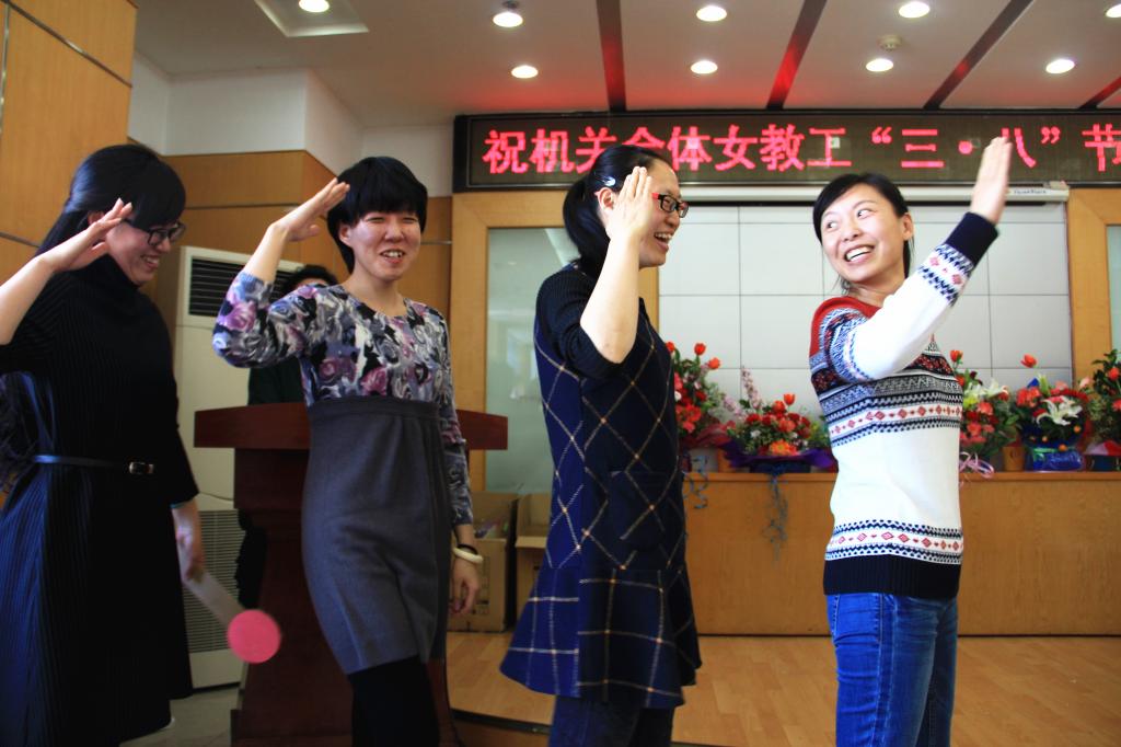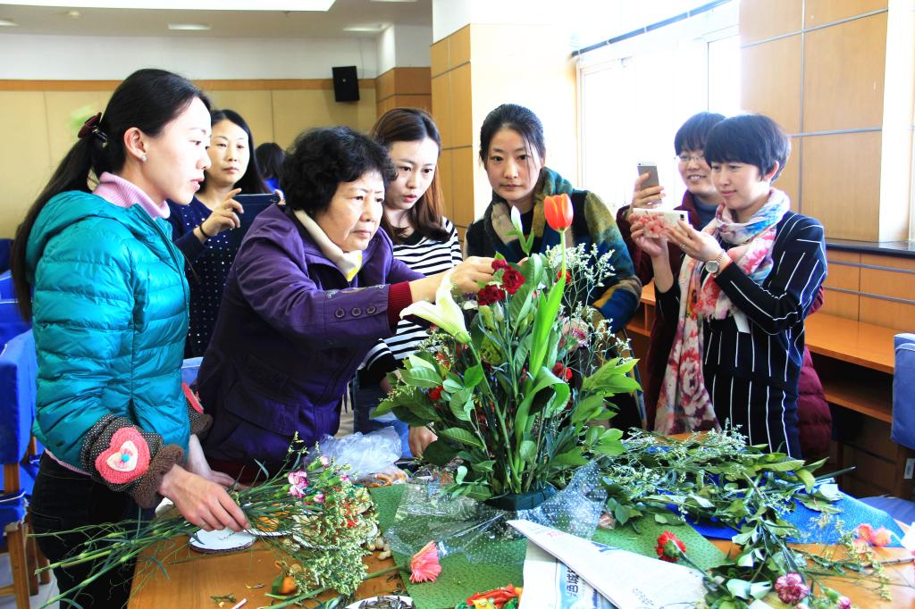 系列活动由插花比赛、闻歌起舞、棋牌活动三部分组成,参与活动的女教工随机分成六组参与了活动。插花比赛中,机关工会为大家准备了花材,女教工们结合自身的创造力和想象力,通过插花艺术表达对生活的热爱,亲手完成的插花作品让大家享受到插花艺术的美妙。闻歌起舞环节,大家根据播放的《四小天鹅舞曲》、《幸福拍手歌》、《小鸡小鸡》等音乐进行即兴表演,时而优美的舞姿,时而滑稽的步态,欢乐的气氛使大家忘记了工作的劳累,放松了心情。最后大家围坐桌旁玩起了棋牌游戏。