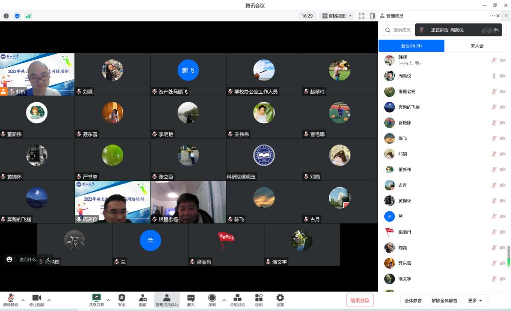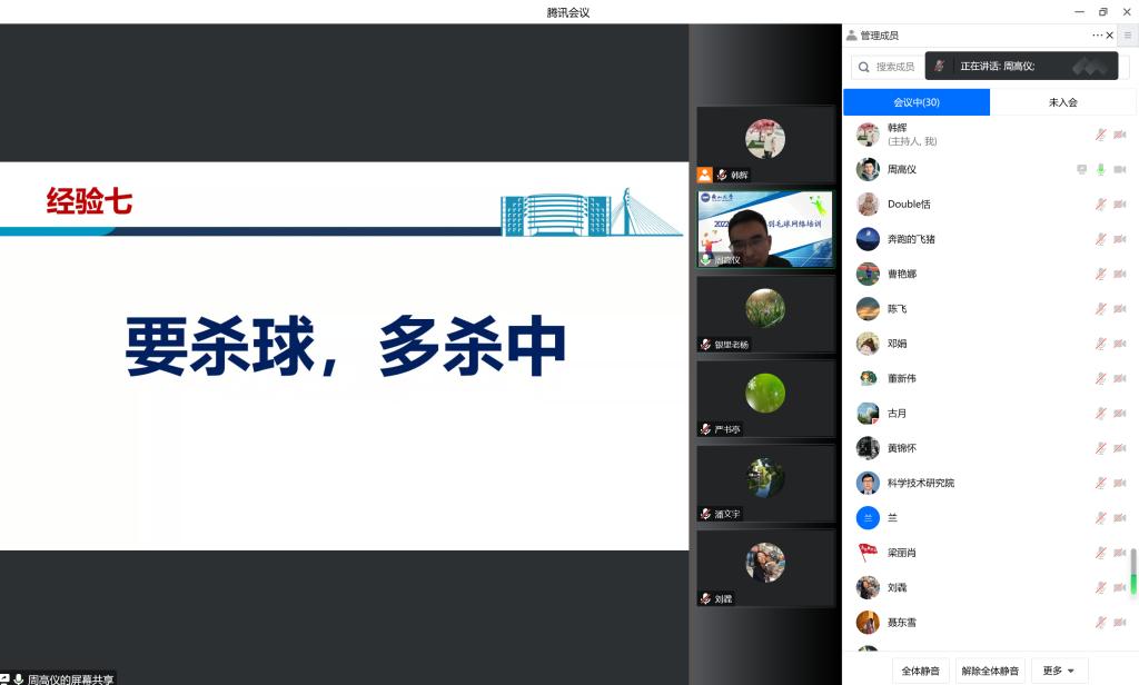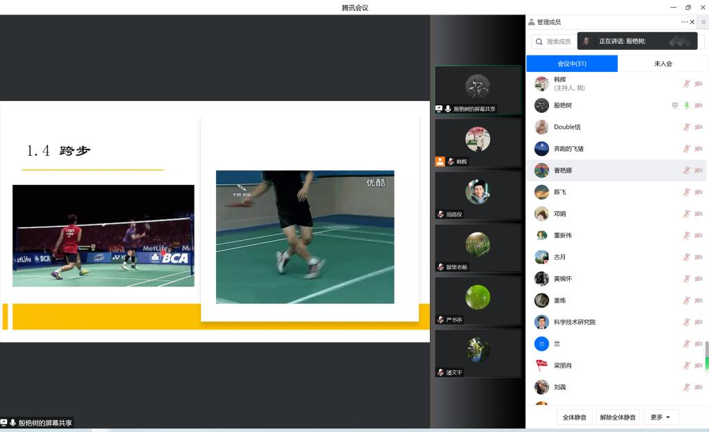 为丰富机关教职工文体生活,进一步加强机关各部门教职工沟通和联系,由机关工会主办、机关羽毛球协会承办的2022年燕大机关羽毛球网络培训于12月9日晚上成功举办。培训会邀请机关羽毛球代表队周高仪和殷艳树做了精彩讲座。周高仪为大家分享了业余羽毛球双打的十五条经验,并结合双打视频进行了精彩讲解。殷艳树做了题为《羽毛球步伐》的专题讲座,通过学术讲解和视频演示等形式详细介绍了垫步、跨步等羽毛球基本步伐及使用技巧。