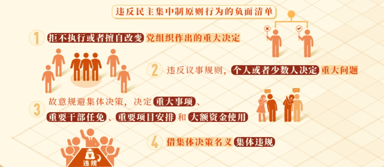 《中国共产党纪律处分条例》第七十七条对违反民主集中制原则的行为作出处分规定。可分为四类: